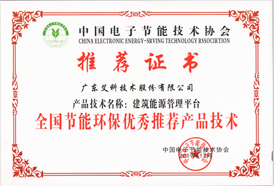 大會上,廣東艾科技術股份有限公司憑借創新的技術與高端的產品,從參與評選的600多家企業中脫穎而出,榮獲“全國節能環保產品技術創新示范企業”,此外,我司自主研發的“建筑能源管理平臺”也榮獲“全國節能環保推薦產品技術獎”。