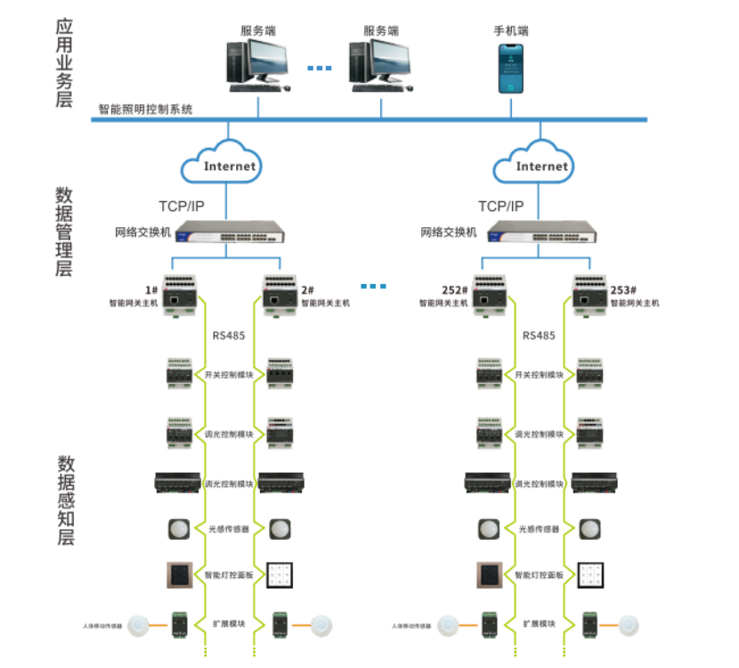 智能照明控制系統,能夠對各種照明燈具進行遠程監控,具有集中控制、智能遠程控制、燈光亮度調節、定時控制、場景切換、電流檢測等功能,達到對各個照明控制箱的參數設定、修改以及場景照明狀態監控目的,記錄燈具全生命周期,有效控制能源消耗、提高燈具壽命、降低維護和管理成本,達到安全、節能、舒適、高效、人性化的效果。