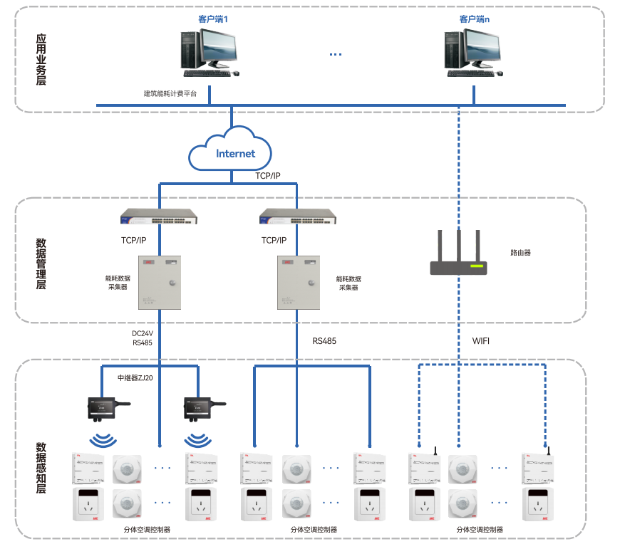 適用于學校、醫院、政府辦公樓、辦公場所、連鎖酒店等分體空調應用場所。