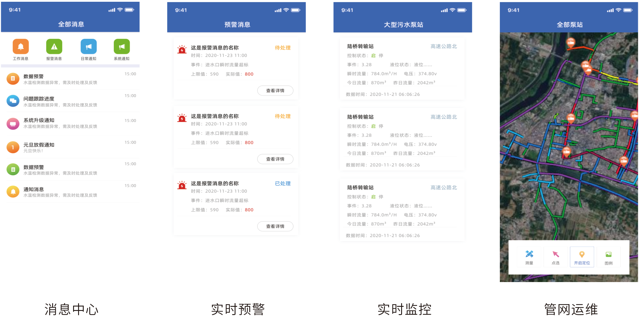 基于管網智能化建設,通過艾水務APP在移動端實現定制化功能整合,方便管理和運營,實現整個水務集團移動端管理平臺,包含水廠、管網、營收等數據綜合在線監管,以及統一外業管理平臺。