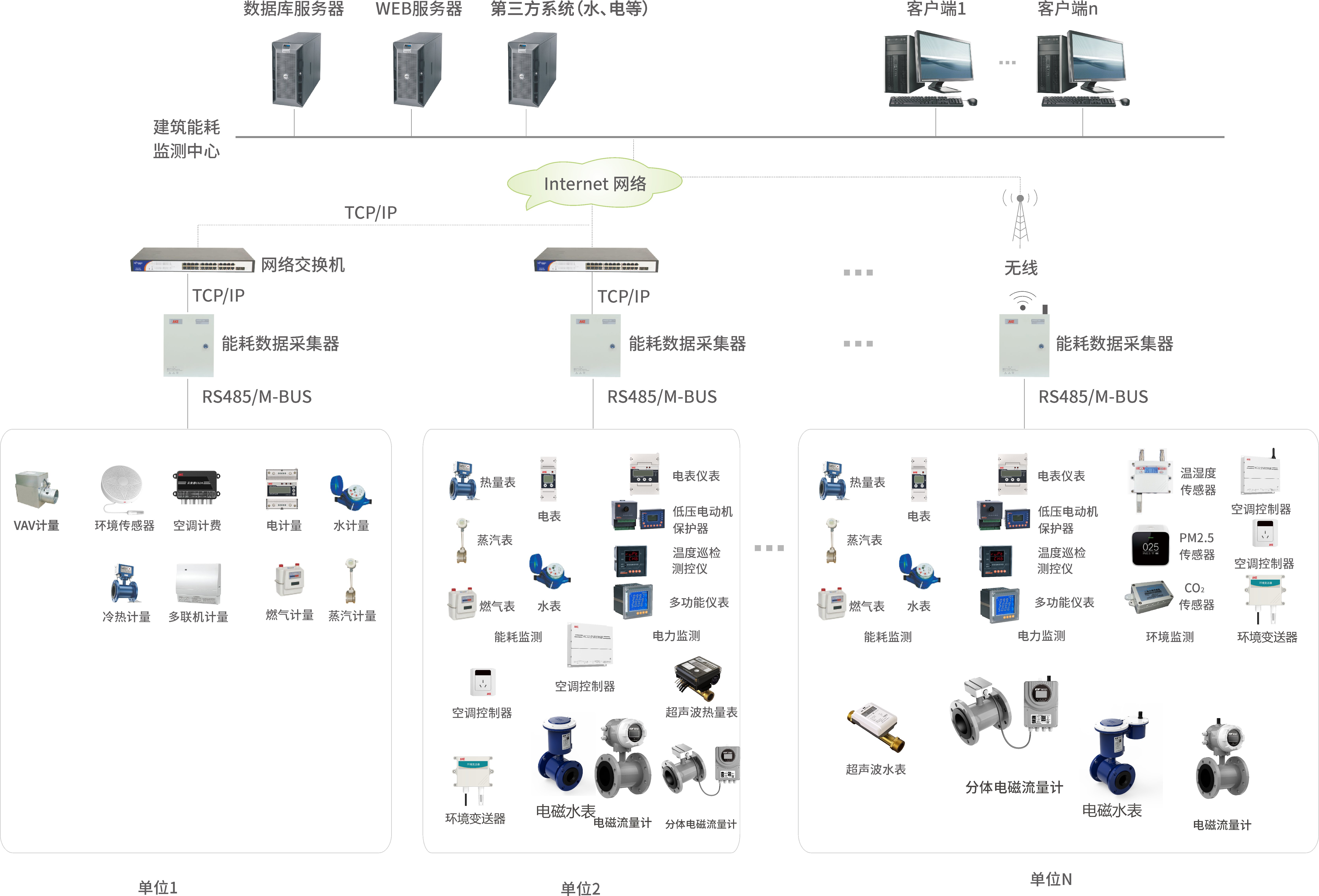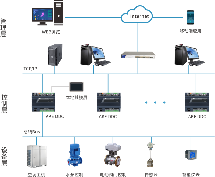 艾科建筑能耗監管系統,采用B/S系統架構,通過在建筑物內安裝分類和分項能耗計量裝置(遠傳水表、遠傳電表、遠傳熱量表等),實時采集和傳輸能耗數據,對能耗數據進行歸類、統計和分析,并可自動、定時向上一級數據中心發送能耗數據信息,無需人工抄表,可隨時在線查詢。