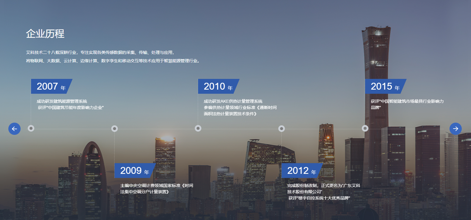廣東艾科技術(shù)股份有限公司成立于1997年,是國(guó)內(nèi)領(lǐng)先的智慧能源管理整體解決方案服務(wù)商,2017年艾科在新三板掛牌,股票代碼871148。艾科一直堅(jiān)持自主創(chuàng)新,擁有強(qiáng)大的產(chǎn)品研發(fā)能力,致力于以管理促進(jìn)節(jié)能,以技術(shù)創(chuàng)新節(jié)能,為國(guó)內(nèi)外客戶(hù)提供建筑能源管理、智慧水務(wù)、智慧供熱、綜合節(jié)能服務(wù)四大領(lǐng)域的整體解決方案,助力客戶(hù)實(shí)現(xiàn)能源管理信息化、自動(dòng)化、智能化和精細(xì)化,助力不同業(yè)態(tài)實(shí)現(xiàn)綠色節(jié)能與降本增效,實(shí)現(xiàn)“雙碳”目標(biāo)。