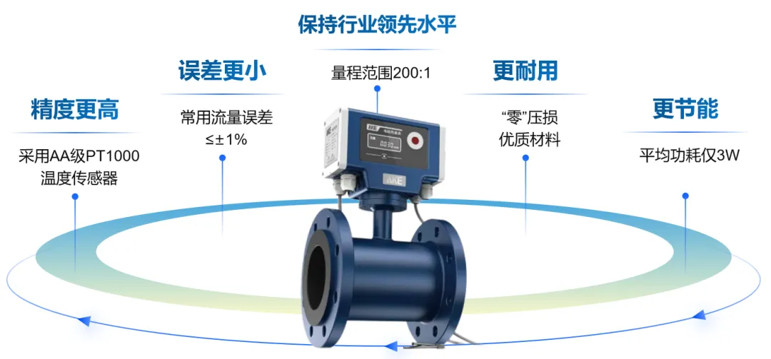 創新采用AA級精度的PT1000溫度傳感器,先進的流量檢測算法技術,具備精度高、誤差小、功耗低等特點,可配合查詢面板、移動端、軟件平臺實現三顯三控,一鍵高效運維。