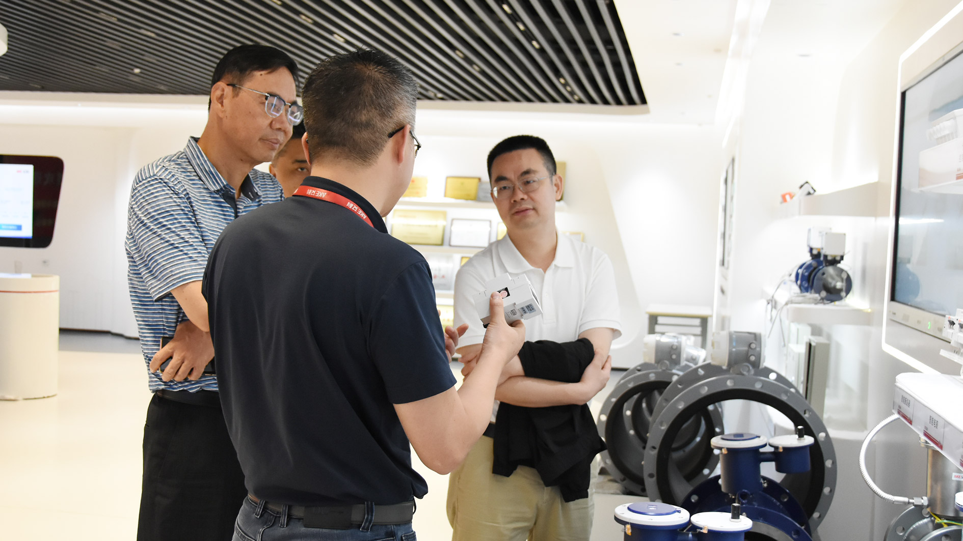 在艾科產品體驗中心,艾科副總經理李飛龍全面介紹了公司的發展歷程、業務布局,現場講解了艾科自主研發的0.2級電磁流量計、1級電磁熱量表、風盤控制器等核心硬件產品的優勢性能、節能技術創新點以及成果應用案例。